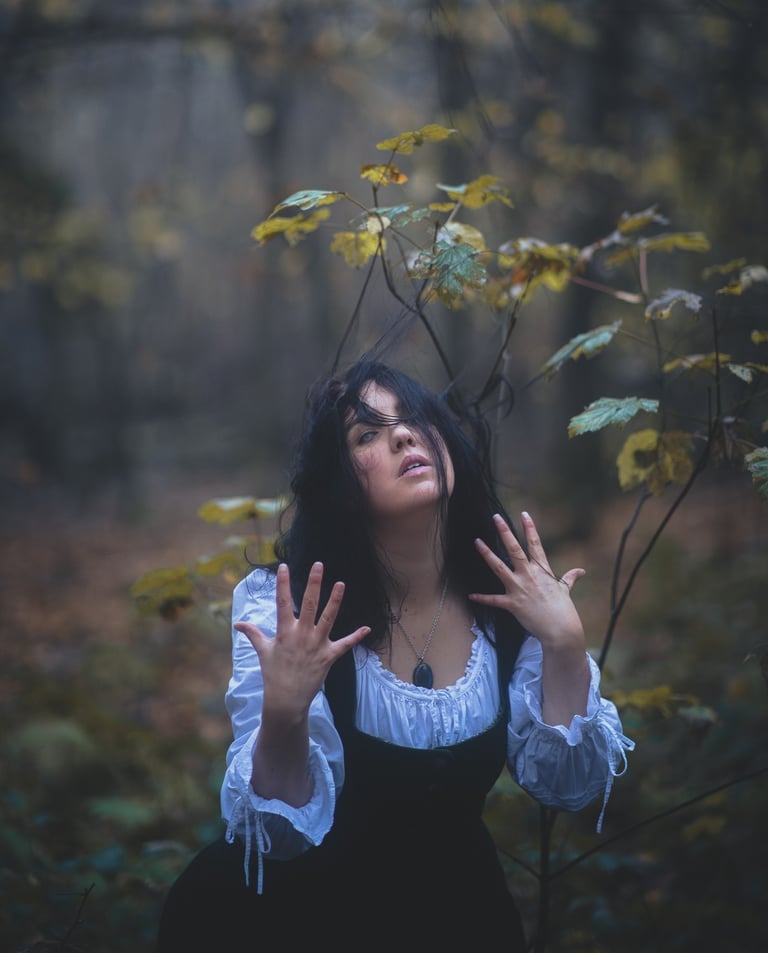 Mon esthétique et mon inspiration se nourrissent de tout ce qui me fait vibrer : la Nature et le Sauvage, la peinture et l'Art, les folklores et les légendes, les sorcières de la pop culture des années 90/2000, l'ésotérisme et les arts occultes, la littérature fantasy, le métal...